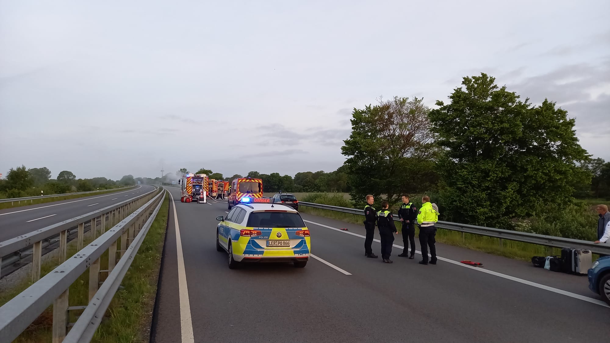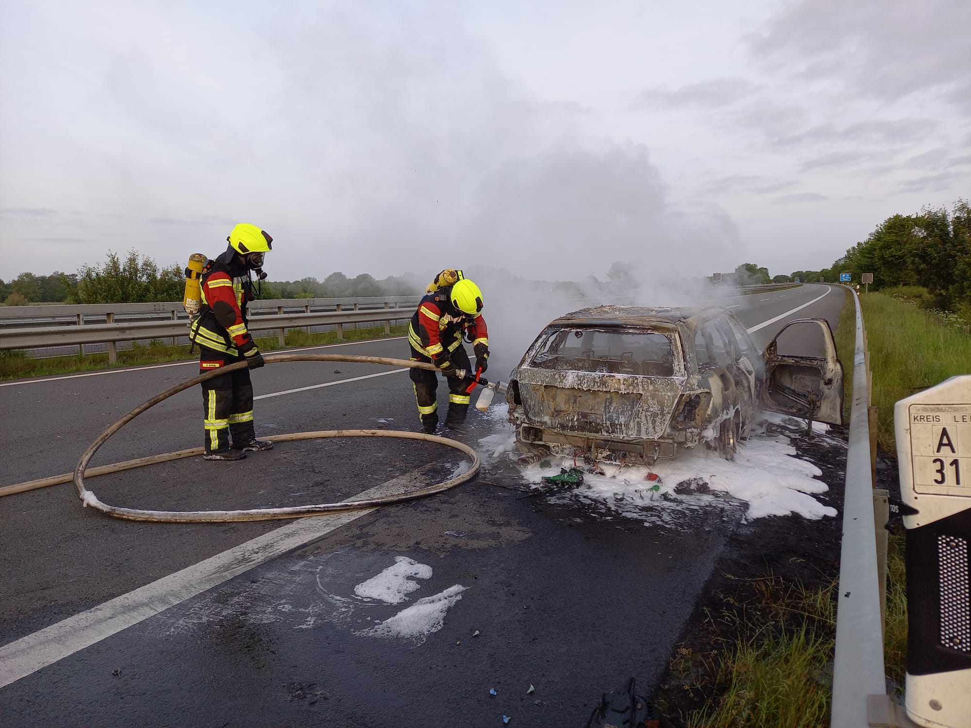 Gegen 05:17 Uhr wurden wir zusammen mit der Feuerwehr Neermoor zu einem Fahrzeugbrand auf die A31 alarmiert. Beim Eintreffen an der Einsatzstelle brannte ein Fahrzeug in voller Ausdehnung. Die Fahrzeuginsassen konnten sich rechtzeitig in Sicherheit bringen. Während der Löscharbeiten war die A31 in Fahrtrichtung Bottrop voll gesperrt. Nach ca. 1,5 Stunden war der Einsatz für uns beendet.