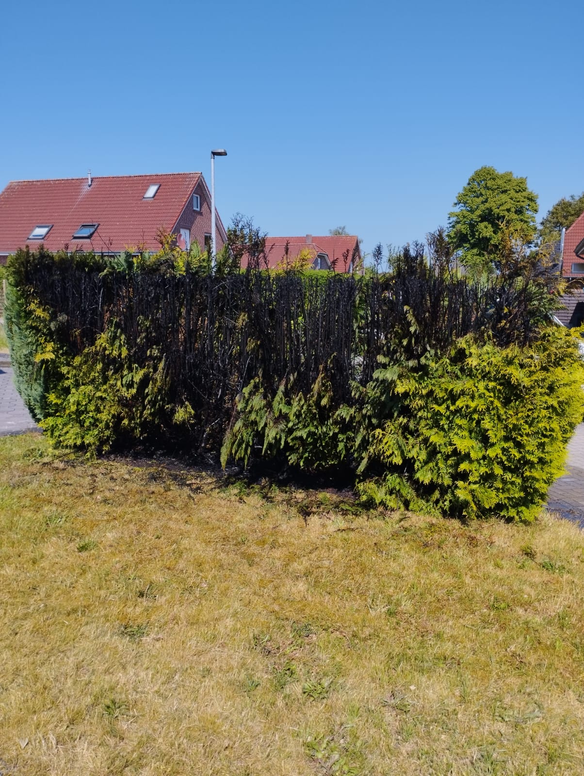 Heute Nachmittag um 15:49 Uhr wurden wir zu einem Heckenbrand in den Veenpad alarmiert. Beim Eintreffen an der Einsatzstelle war das Feuer bereits aus, so dass nur noch kleinere Glutnester abgelöscht werden mussten. Nach zehn Minuten war der Einsatz beendet.