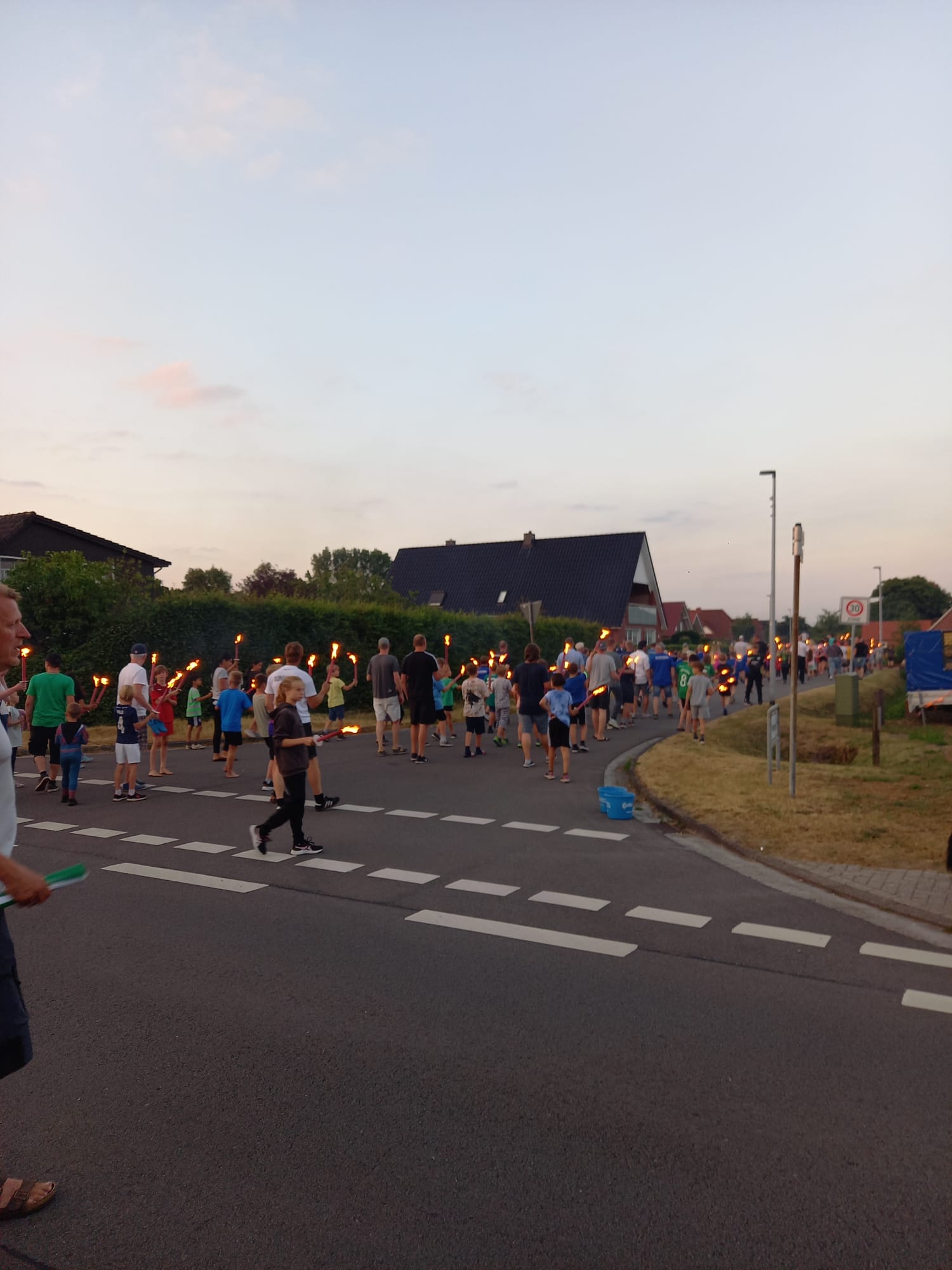 Im Rahmen des 24. E-Jugendturnier des VfL Fortuna Veenhusen waren wir dieses Jahr wieder für die Straßenverkehrsabsicherung zuständig und haben den Fackelumzug begleitet. Aufgrund der aktuellen Trockenheit wurden zusätzlich an jedem Sicherungsposten Eimer mit Wasser bereitgestellt, um heruntergefallene Fackeln noch schneller abzulöschen.