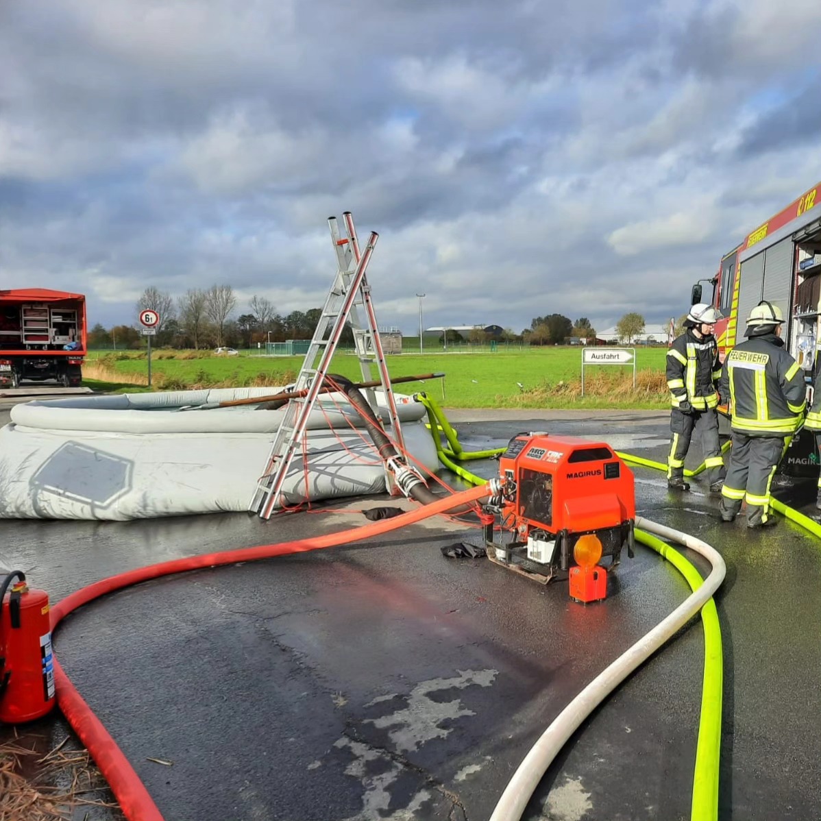 Feuer Betriebsgebäude in Nüttermoor war das Stichwort heute morgen gegen 08:47 auf unseren Meldeempfängern. Es ging nach Nüttermoor auf das Betriebsgelände der EWE Gasspeicher. Eine Halle sollte in Brand stehen. Nach kurzer Zeit stand fest das sich hierbei um eine Übung handelt. Wir verlegten dort ca.500m B-Schlauch und übernahmen die Menschenrettung aus dem Gebäude. Nach ca. 4 Stunden Einsatz gab es noch an der Einsatzstelle Verpflegung vom Fachzug Logistik und wir konnten die Rückfahrt antreten.
