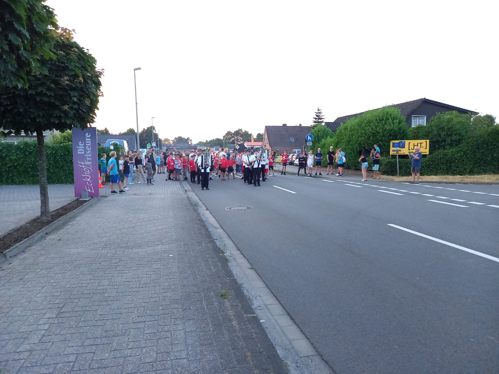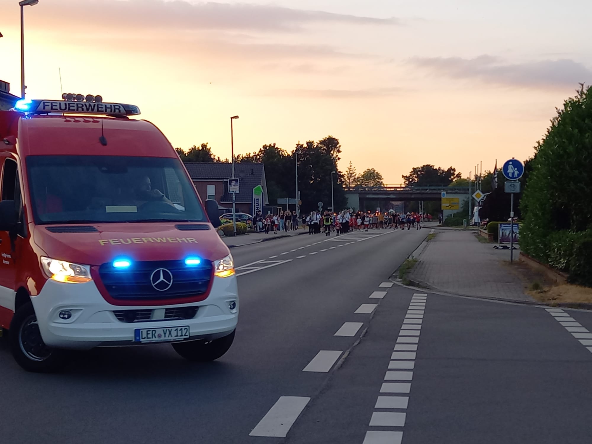 Im Rahmen des 24. E-Jugendturnier des VfL Fortuna Veenhusen waren wir dieses Jahr wieder für die Straßenverkehrsabsicherung zuständig und haben den Fackelumzug begleitet. Aufgrund der aktuellen Trockenheit wurden zusätzlich an jedem Sicherungsposten Eimer mit Wasser bereitgestellt, um heruntergefallene Fackeln noch schneller abzulöschen.